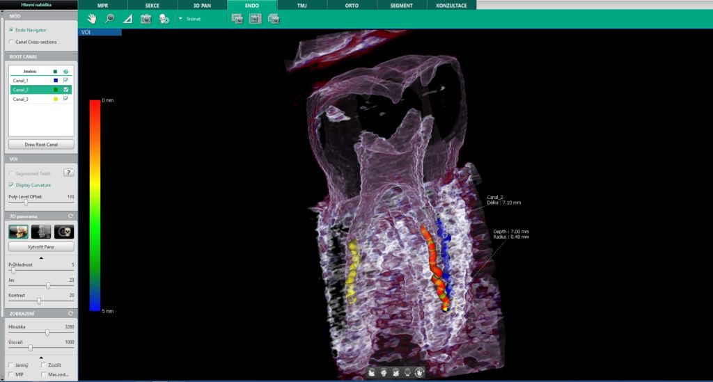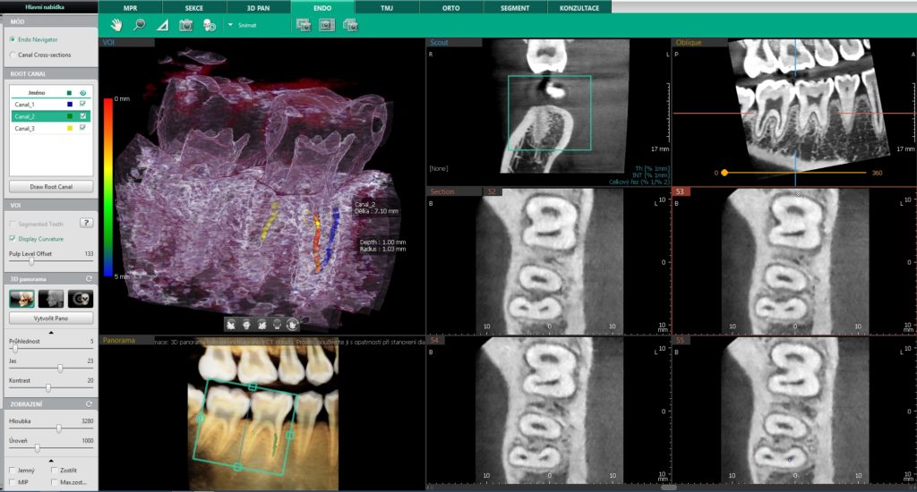 Endo mód s velikostí FOV 4cm x 4cm a rozlišením 49,5 μm je optimalizovaný pro ošetření se zaměřením na nejmenší detail. Je ideální pro použití v endodoncii a umožňuje získat výjimečné snímky ve vysokém rozlišení.