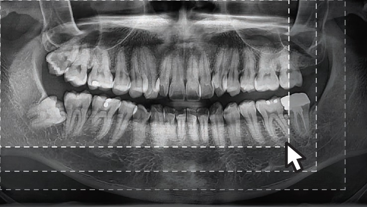 Insight Pan je vícevrstvý panoramatický snímek, který poskytuje jedinečný pohled do hloubky zubu. Insight 2.0 má vylepšenou funkci volného FOV, což vám umožní zachytit pouze oblast zájmu.