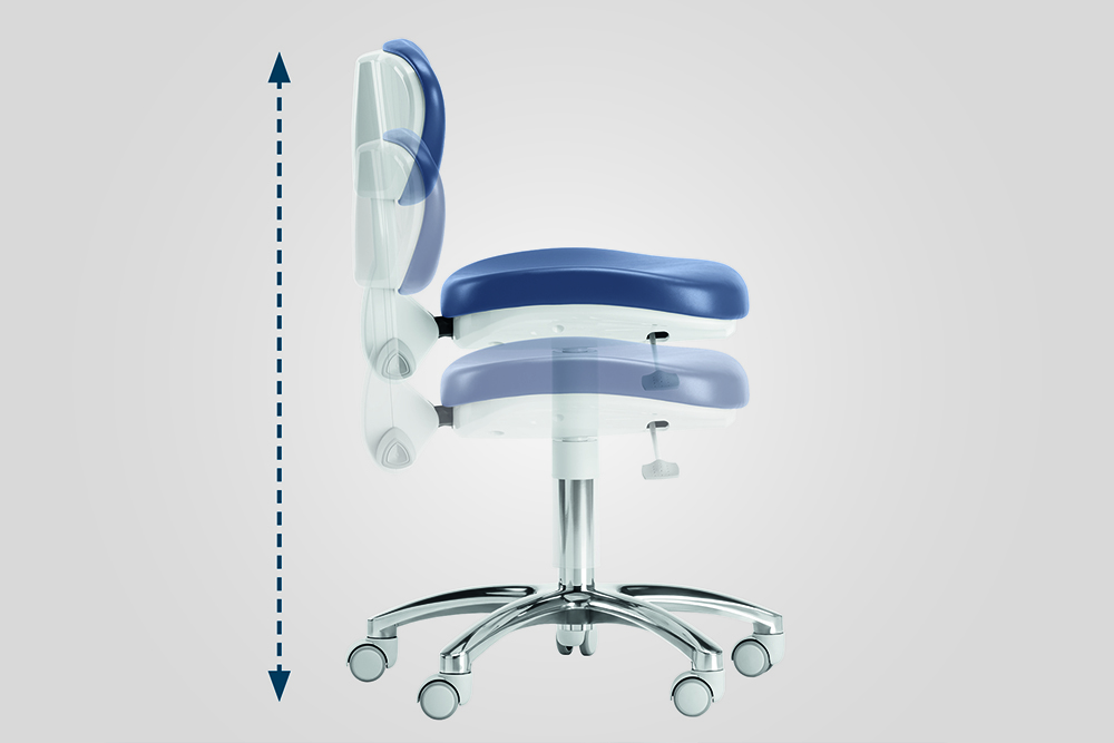 Židle M7 má široký výškový rozsah s nezávislým nastavením sedáku a opěradla. Pro další zvýšení sedáku je možnost doobjednání 10cm prodloužení.