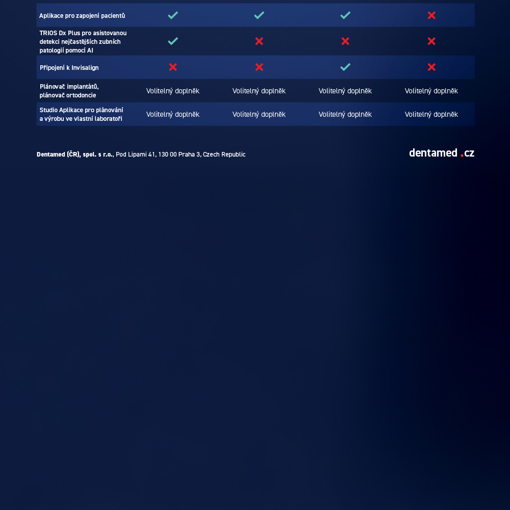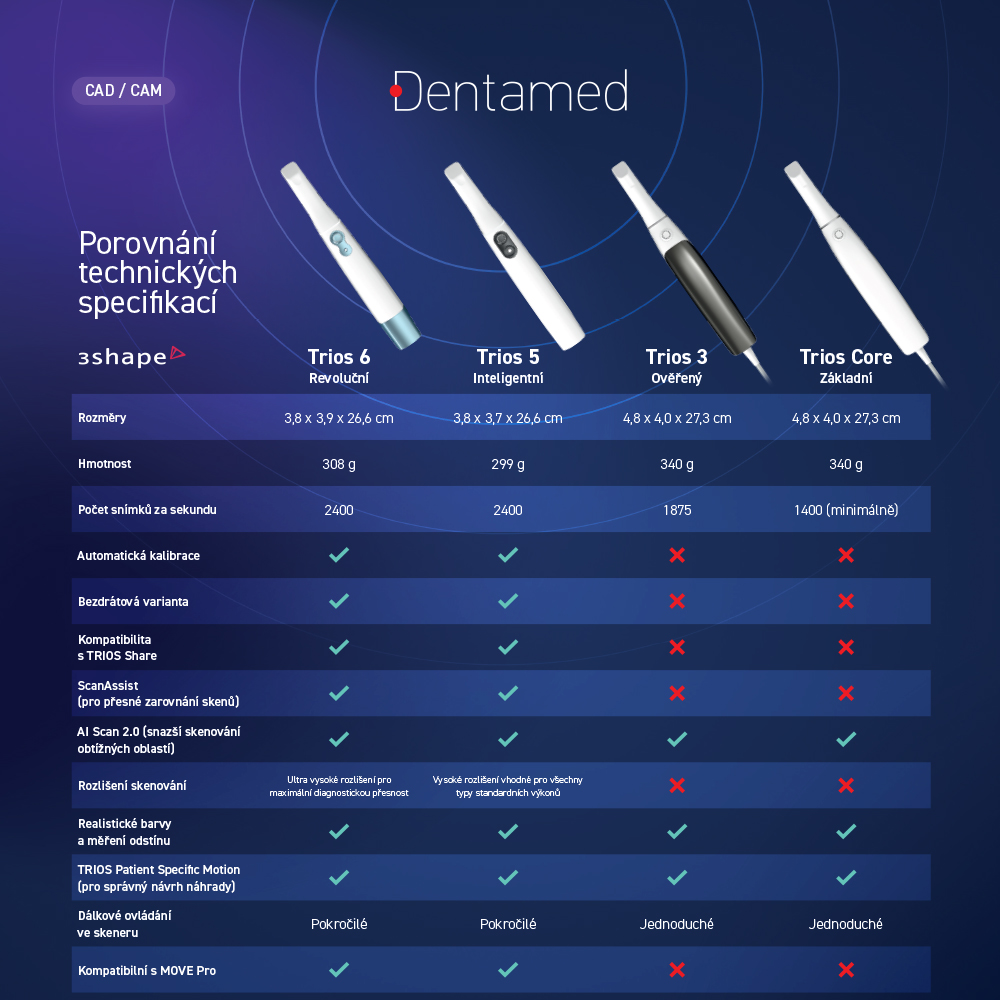 *Podporované skenery pro výměnu: 3shape (All Models), Align iTero (All Models), BioTech WOW, Dentsply Sirona (All Models), Medit (All Models), Dental Wings (Virtuo Vivo), Carestream/DEXIS (All Models), Planmeca (Emerald, Emerald S, Ivoclar Vivascan), 3Disc (Heron, OVO), Shining (Aoralscan 3 wireless), AlliedStar (AS 200), Launca (DL-300), Panda (Smart, P4)